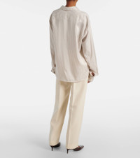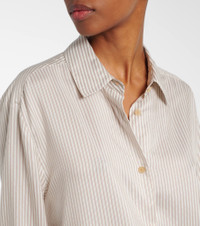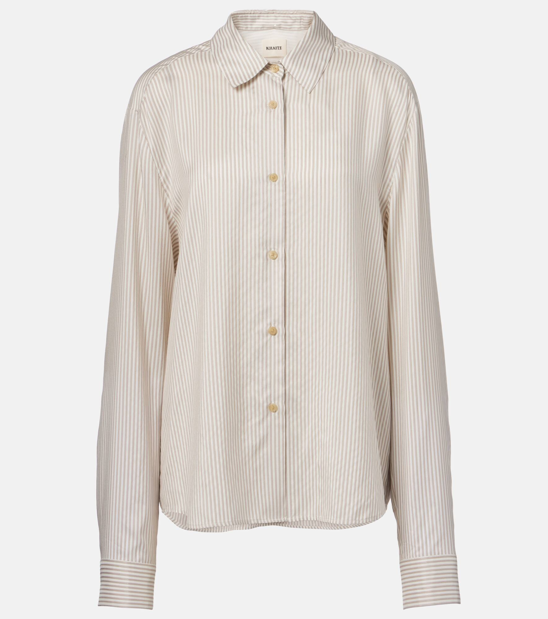 Product Details - Material: 100% silk - Care instructions: dry clean - Made in the USA - Designer color name: Khaki - Item color: beige - Item number: P01046129 Size & Fit - True to size - Dropped shoulders - Designed for a loose fit - Non-stretchy fabric - Falls below the hip - Height of model is 175cm-69" and wears a size XS