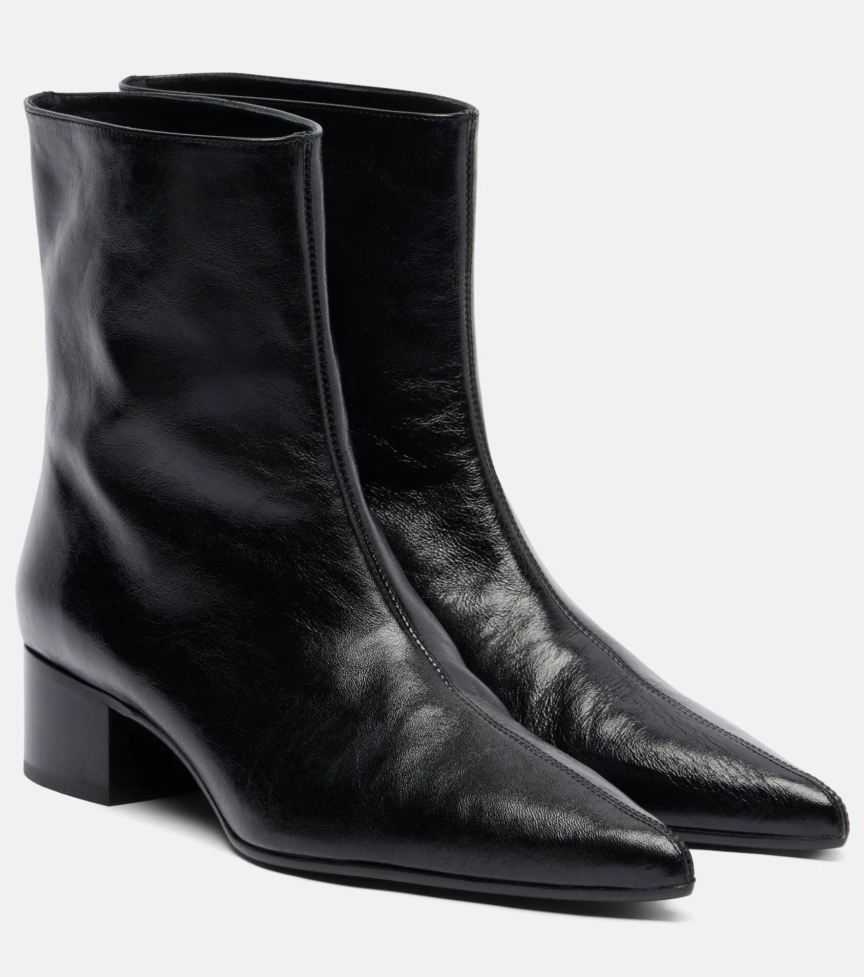 Khaite's minimalist designs exude modern sophistication and effortless elegance. The Andee ankle boots are crafted from supple leather and boast 40mm heels and pointed toes. Product Details - Upper: calf leather - Lining: calf leather - Sole: leather insole and sole - Toe shape: pointed toe - Made in Italy - Includes: dust bag, shoe box - Designer color name: Black - Item color: black - Item number: P01122789 Size & Fit - True to size - European sizes - 4,5cm-2" heel (size EU 38)