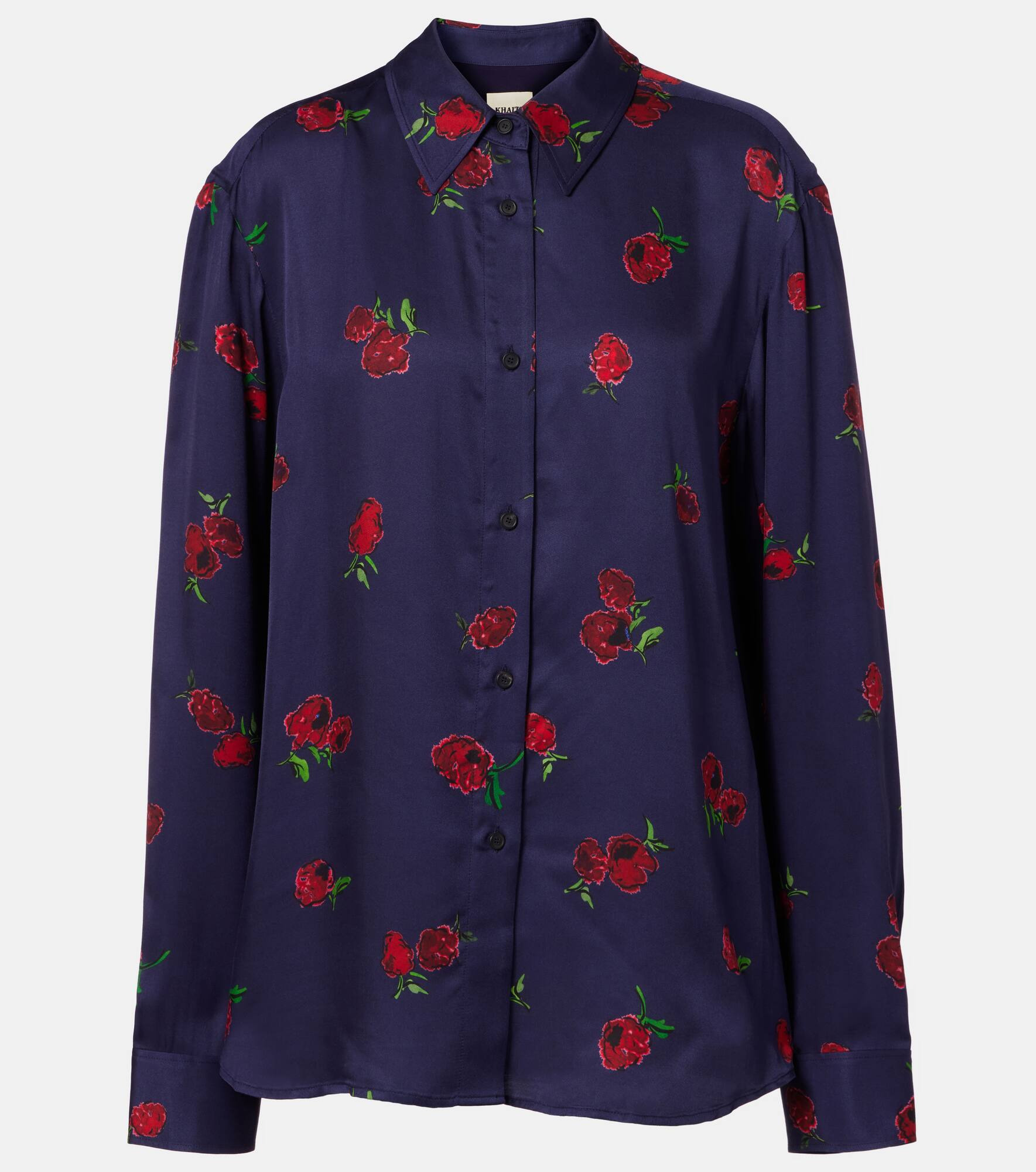 Khaite's minimalist designs exude modern sophistication and effortless elegance. Made from twill with a silky finish, the Argo shirt features an all-over raspberry print and is complete with single-button cuffs. Product Details - Material: 100% viscose - Care instructions: dry clean - Made in the USA - Designer color name: Raspberry/Amethyst - Item color: blue, red - Lining: 100% silk - Details: 100% horn - Contains non-textile parts of animal origin - Closure: buttoned placket - Standard placket - Collar: classic (Straight point) - Cuff: one button - Item number: P01045241 Size & Fit - True to size - Dropped shoulders - Designed for a loose fit - Non-stretchy fabric - Falls below the hip - The model seen in the picture is 178cm-5'10" and wearing a size XS