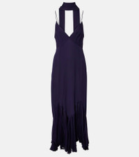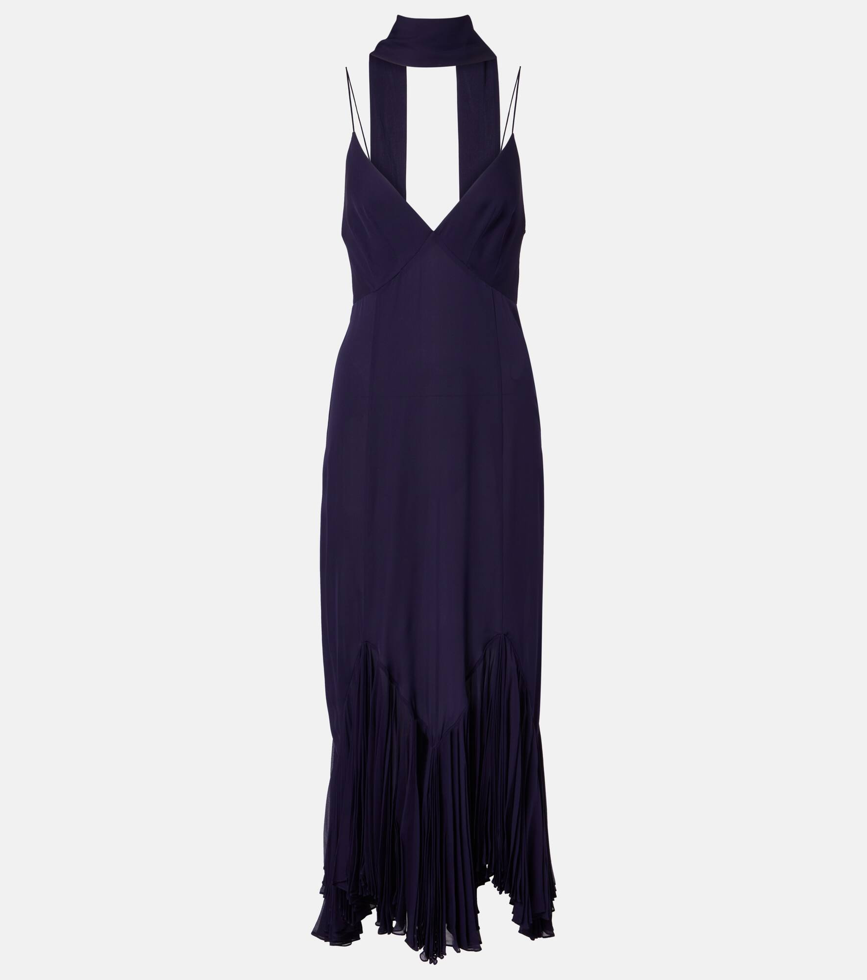 Candita scarf-detailed pleated silk-georgette maxi dress Navy