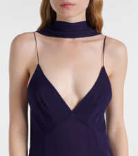 Crafted in 19-millimeter silk georgette, the Candita midi dress from Khaite features a flowing silhouette with godets at its flared hem. The elegant design is complete with delicate rouleau straps and a detachable scarf that drapes down the back. Product Details - Material: 100% silk - Care instructions: dry clean - Made in the USA - Designer color name: Amethyst - Item color: blue - Lining: 100% silk - Collar: V-neck - Closure: buttoned back - Detachable band - Hem: uneven - Item number: P01045249 Size & Fit - True to size - Low back - Cinched waist - Non-stretchy fabric - The model seen in the picture is 178cm-5'10" and wearing a size US 4