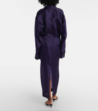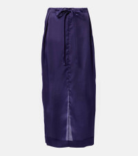 Product Details - Material: 100% silk - Care instructions: hand wash - Made in the USA - Designer color name: Amethyst - Pockets: back pockets - Item number: P01040234 Size & Fit - True to size - Semi-sheer - Adjustable at the waist - Non-stretchy fabric - slit length 50cm-19.5" - The model seen in the picture is 178cm-5'10" and wearing a size XS