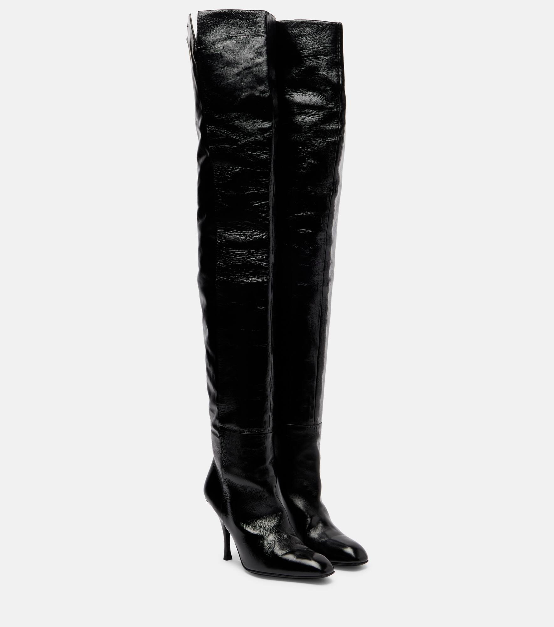 Khaite's minimalist designs exude modern sophistication and effortless elegance. The Colt over-the-knee boots are crafted in Italy from polished leather and are set atop slim 100mm heels with rounded-toe silhouettes. Product Details - Upper: calf leather - Lining: leather - Sole: leather insole and sole - Toe shape: pointed toe - Made in Italy - Includes: shoe box - Designer color name: Black - Item color: black - Item number: P01100264 Size & Fit - True to size - European sizes - 10cm-4" heel (size EU 38) - 70cm-27.5" shaft height (size EU 38) - 46cm-18" shaft width (size EU 38) - shaft width measured on largest part of boot