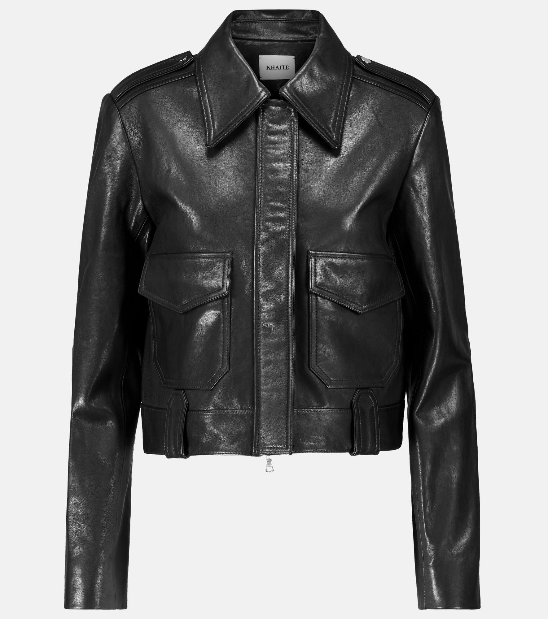 The Cordelia leather crop jacket from Khaite is the epitome of modern chic. Made from smooth leather and fully lined in silk, the cropped cut is finished with patch pockets and a two-way zip. - material: 100% leather - lining: 100% silk, fully lined - care instructions: specialist clean - patch pockets - two-way zipped front - Made in the USA - epaulettes, zipped cuffs, belt loops - Designer colour name: Black