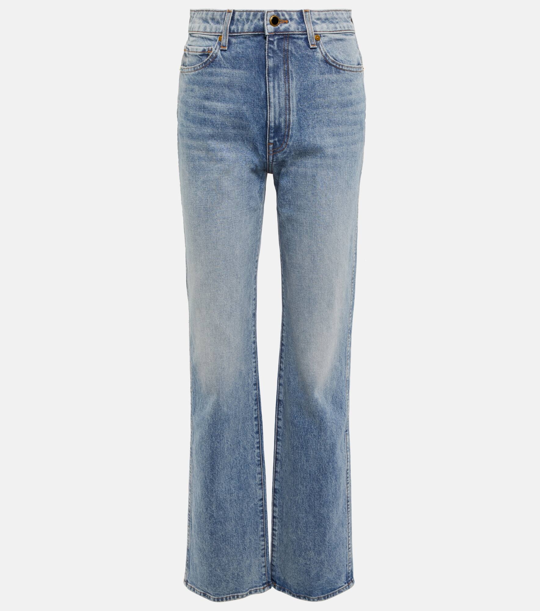Let Khaite cater to your everyday essentials with the Danielle jeans. Made from sturdy cotton denim, they have a classic high waist and straight legs with antiqued brass and enamel buttons on the fly. Product Details - Material: 2% polyurethane, 98% cotton - Care instructions: hand wash - Made in the USA - Closure: zipper fly, button fastening - Pockets: five pockets - Item number: P00755148 Size & Fit - Fits small to size - we recommend trying one size larger - Mid-weight material - Non-stretchy fabric - Straight leg - High-rise - The model seen in the picture is 178cm-5'10" and wearing a size 27