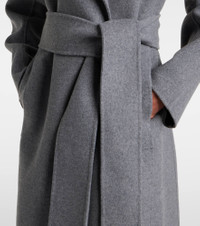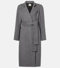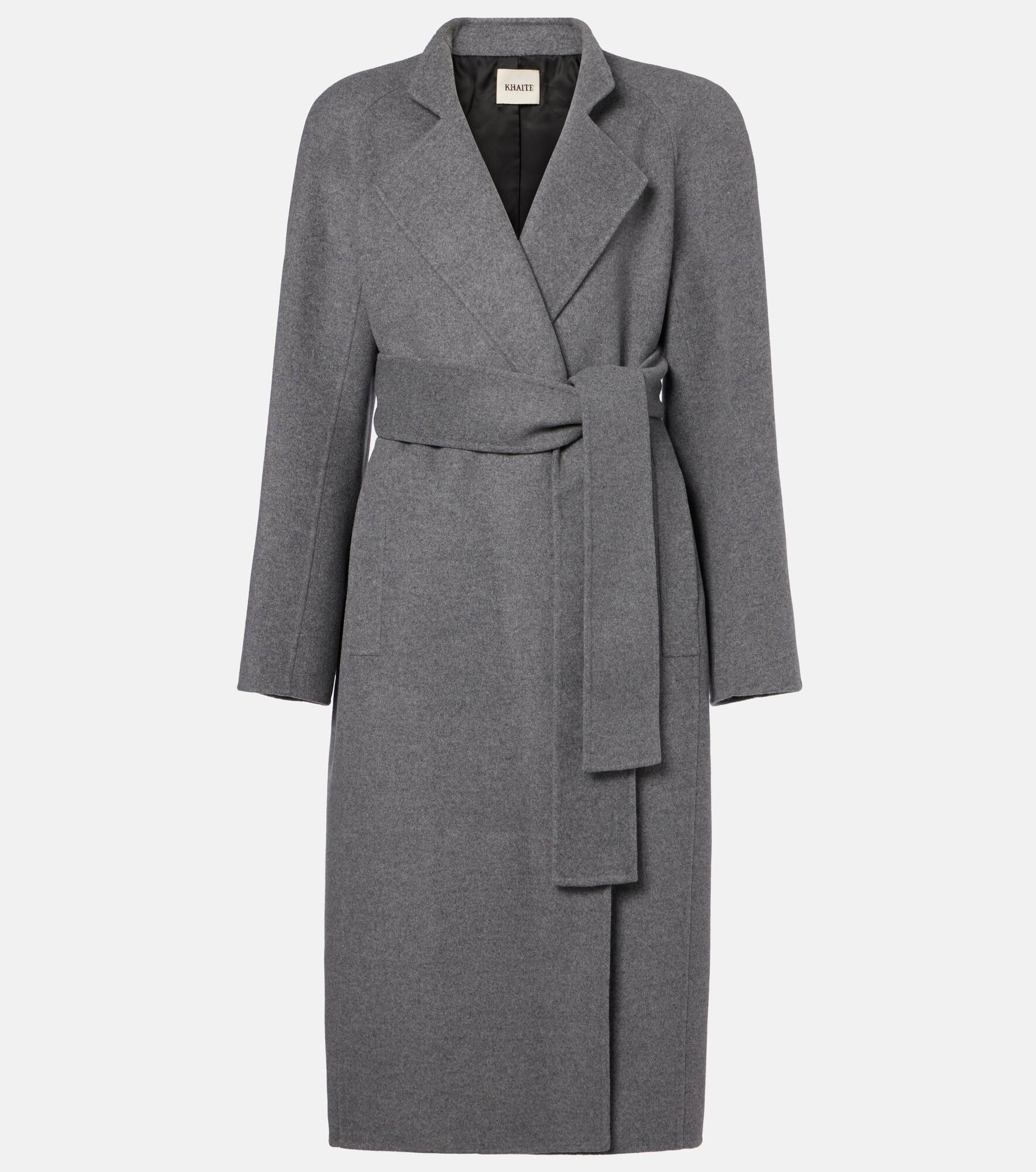 Khaite's minimalist designs exude modern sophistication and effortless elegance. A prime example, the Deena wrap coat is made from double-faced melange wool and features raglan sleeves and a belted waist. Product Details - Material: 100% wool - Care instructions: dry clean - Made in the USA - Designer color name: Grey Melange - Item color: gray - Lining: 100% cupro - Pockets: side slit pockets - Detachable belt - Closure: self-ties - Item number: P01046175 Size & Fit - True to size - Shoulder pad inserts - Loose fit, comes with belt - Non-stretchy fabric - The model seen in the picture is 178cm-5'10" and wearing a size XS