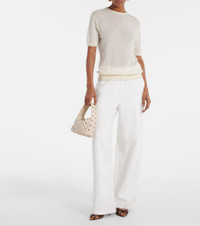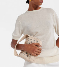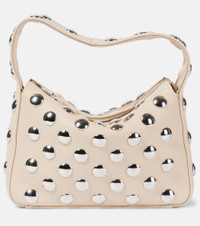 Elena small studded textured-leather shoulder bag Beige