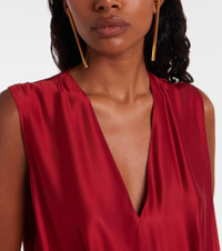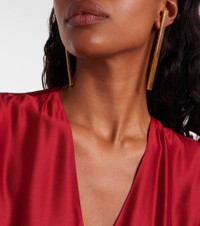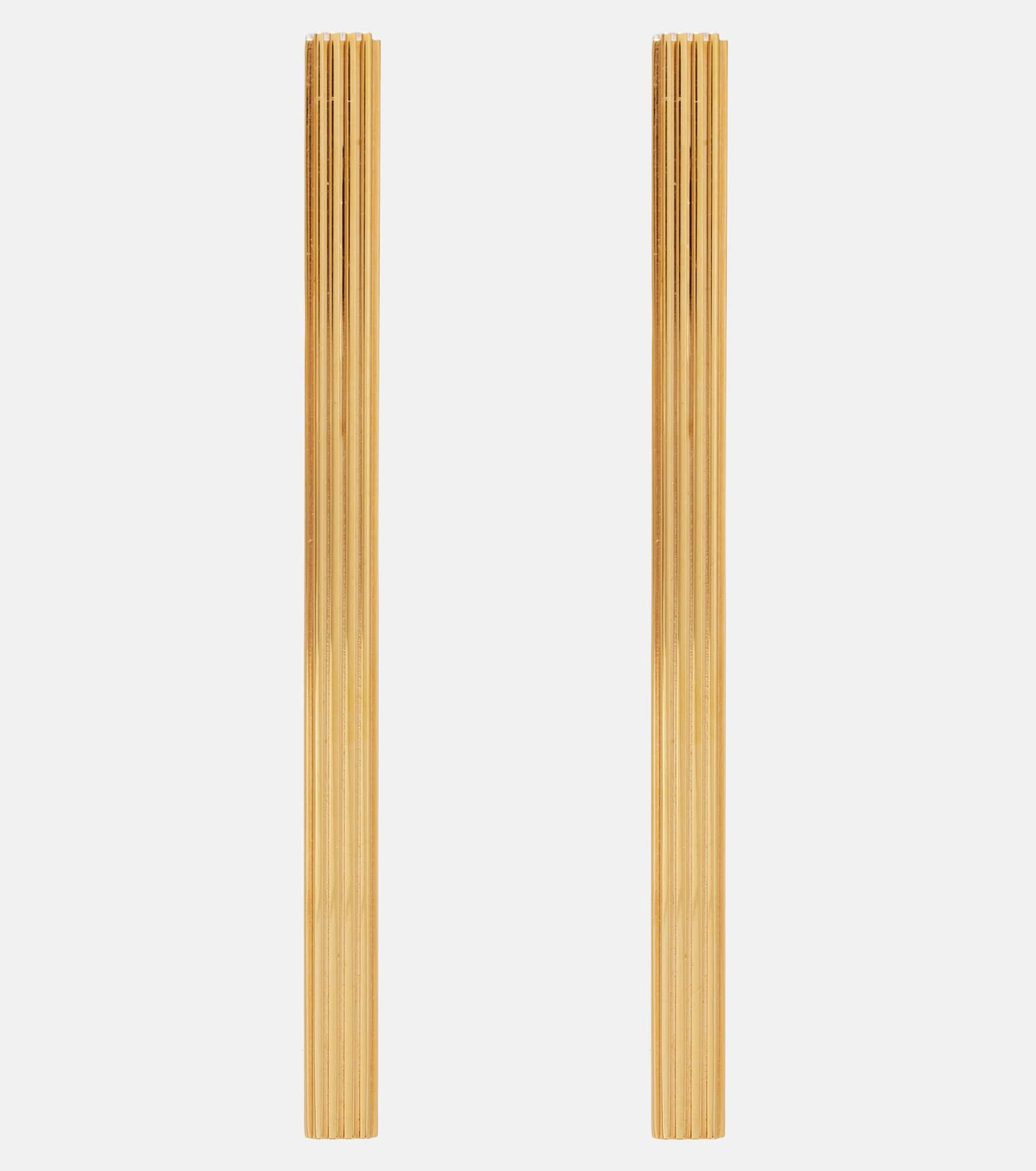 Khaite's minimalist designs exude modern sophistication and effortless elegance. The Empire drop earrings are crafted from 18kt gold plating and have an elongated, ridged silhouette. Product Details - Material: 18kt gold-plated brass - Made in Italy - Item color: gold - Designer color name: Gold - Item number: P01071006 Size & Fit - Length 8,5cm-3.5" - Width 0,5cm-0"