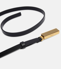 Khaite's minimalist designs exude modern sophistication and effortless elegance. The Empire belt is crafted from leather and features a gold-toned buckle with a ridged finish and a logo-engraved detail. Product Details - Material: calf leather - Lining: calf leather - Made in Italy - Color: black - Designer color name: Black - Item color: black - Hardware color: gold - Item number: P01120450 Size & Fit - Width 1,4cm-0.5" - Buckle width 1,7cm-0.5"