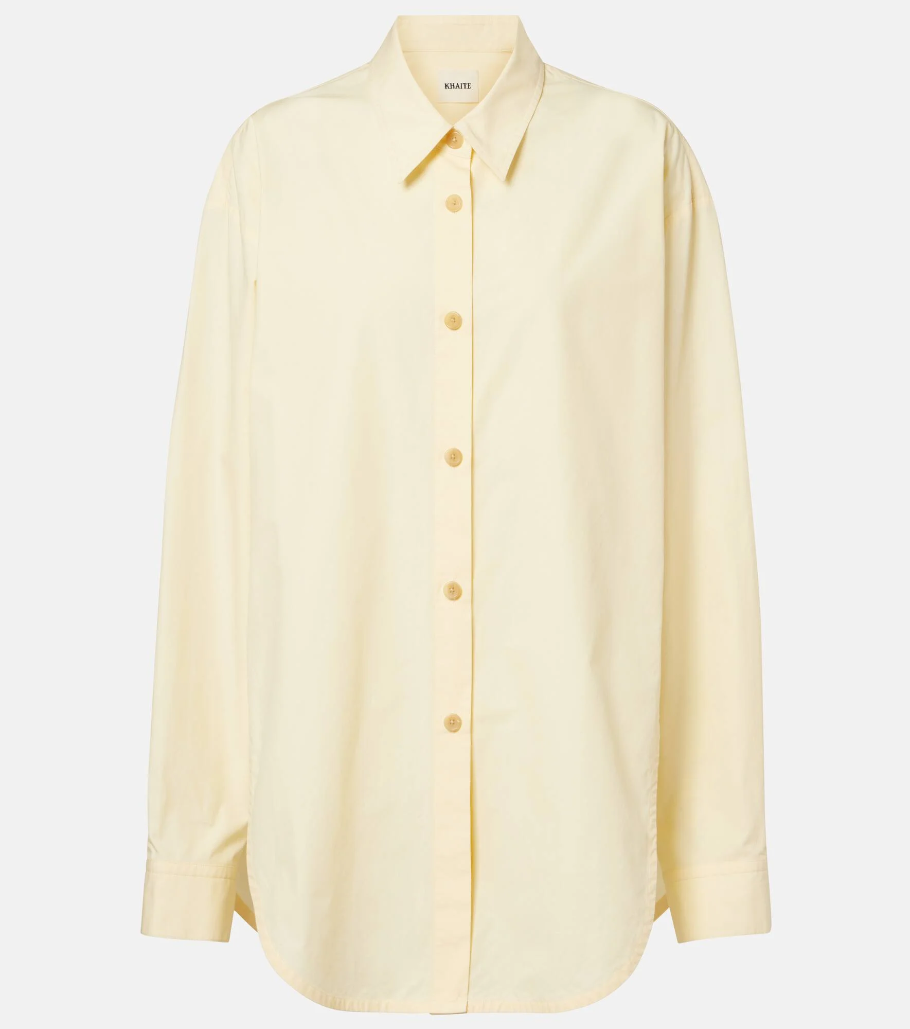 Khaite's minimalist designs exude modern sophistication and effortless elegance. The Goya shirt is made in Italy from crisp cotton poplin and has a slightly oversized fit. Product Details - Material: 100% cotton - Care instructions: dry clean - Made in Italy - Designer color name: Pale Yellow - Item color: yellow - Collar: classic (Straight point) - Cuff: buttoned - Closure: buttoned front - Side slits - Item number: P01107110 Size & Fit - True to size - For a closer fit, we recommend taking one size down - Dropped shoulders - Oversized - Non-stretchy fabric - Falls below the hip - Height of model is 174cm-68.5" and wears a size XS