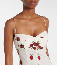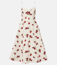 Crafted from lightweight silk and cotton organza, the Isabella midi dress from Khaite features a flowing, A-line skirt with a sweetheart bodice. The elegant design is complete with dainty rouleau straps and a romantic, all-over raspberry print. Product Details - Material: 53% silk, 47% cotton - Care instructions: dry clean - Made in the USA - Designer color name: Raspberry/Cream - Item color: white, red - Closure: zipped back - Unlined - Item number: P01045246 Size & Fit - True to size - Semi-sheer - Cinched waist - Non-stretchy fabric - The model seen in the picture is 178cm-5'10" and wearing a size US 4