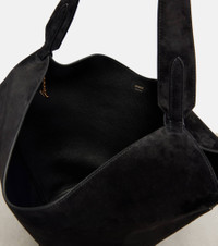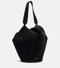 The Lotus Small tote bag from Khaite is crafted from velvety suede in a lightweight construction. Inspired by scarf silhouettes, it features a rounded base for structure and a jewelry-like interior toggle closure. Product Details - Material: leather (suede) - Lining: leather - Made in Italy - Designer color name: Black - Item color: black - Closure: lock-bar fastening, open top - Internal details: single compartment - Includes: dust bag - Item number: P01052958 Size & Fit - Height 24cm-9.5" - Width 35cm-14" - Depth 17.5cm-7" - Length of handles 44cm-17.5"