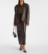 Khaite's minimalist designs exude modern sophistication and effortless elegance. Made in Italy from dark brown leather, the Loxley maxi skirt is a paneled piece with an exaggerated high-rise waistline and subtle pleated details. Product Details - Material: 100% lamb leather - Care instructions: specialist clean - Made in Italy - Designer color name: Mud - Item color: brown - Closure: zipped back - Long vent - Fully lined - Item number: P01077578 Size & Fit - True to size - Close fit at the hips - Non-stretchy fabric - High-waisted - slit length 46,5cm-18.5" - The model seen in the picture is 178cm-5'10" and wearing a size US 4