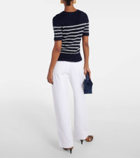 Product Details - Material: 58% silk, 42% cashmere - Care instructions: dry clean - Made in Italy - Designer color name: Navy / Cream - Item number: P00947551 Size & Fit - True to size - Cinched waist - Stretchy fabric - Falls to the hip - The model seen in the picture is 178cm-5'10" and wearing a size XS