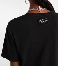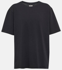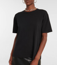 The Mae T-shirt from Khaite is a buy now, wear forever piece. It's made from black cotton jersey, and has an exposed cashmere label at the back – intarsia-knit with logo detailing. Product Details - Care instructions: machine wash at 30 degrees - Material: 100% cotton - Made in Portugal - Designer color name: Black - Item number: P00697265 Size & Fit - True to size - Dropped shoulders - Designed for a loose fit - Mid-weight material - Falls to the hip - The model seen in the picture is 178cm-5'10" and wearing a size XS