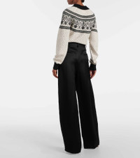 Marinta satin-trimmed pleated crepe wide-leg pants