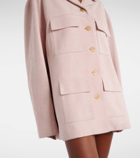 Product Details - Material: 100% lamb leather - Care instructions: dry clean - Made in Romania - Designer color name: Soft Pink - Closure: buttoned front - Pockets: patch pockets - Item number: P00992550 Size & Fit - Fits large to size - we recommend trying two sizes smaller - Dropped shoulders - Oversized - Non-stretchy fabric - Falls below the hip - The model seen in the picture is 178cm-5'10" and wearing a size US 0