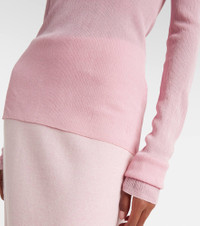 Khaite's minimalist designs exude modern sophistication and effortless elegance. The Mosi top is knitted from fine silk yarn and has semi-sheer construction. Product Details - Material: 100% silk - Care instructions: dry clean - Made in Italy - Designer color name: Rosewater - Item color: pink - Cuff: ribbed - Hem: ribbed - Item number: P01107059 Size & Fit - True to size - Sheer - Fitted - Stretchy fabric - Falls below the hip - Height of model is 174cm-68.5" and wears a size XS