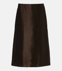 Khaite's minimalist designs exude modern sophistication and effortless elegance. Made in Italy from dark brown twill with a luminous finish, the Nania midi skirt has a high-rise waistline and a zipper fastening at the back. Product Details - Material: 86% viscose, 14% silk - Care instructions: dry clean - Made in Italy - Designer color name: Bark - Item color: brown - Hem: straight - Closure: concealed zipper, zipped back, hook-fastening back - Item number: P01077583 Size & Fit - True to size - Non-stretchy fabric - Sits low on the hips - The model seen in the picture is 178cm-5'10" and wearing a size US 4