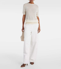 Product Details - Material: 93% cashmere, 7% elastane - Care instructions: dry clean - Made in Mongolia - Designer color name: Cream - Sleeves: short-sleeved - Collar: crewneck - Item number: P00947562 Size & Fit - True to size - Straight fit - Stretchy fabric - Falls to the hip - The model seen in the picture is 178cm-5'10" and wearing a size XS