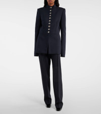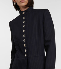 Product Details - Material: 96% wool, 2% elastane, 2% cotton - Care instructions: dry clean - Made in the USA - Designer color name: Navy White - Lining: 100% cupro - Closure: snap-buttoned front - Pockets: side slit pockets - Item number: P00888107 Size & Fit - True to size - Shoulder pad inserts - Cinched waist - Non-stretchy fabric - Falls below the hip - The model seen in the picture is 178cm-5'10" and wearing a size US 4