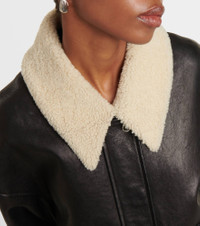 Khaite's Shellar jacket is an investment piece that'll take you through transeasonal weather and beyond. Made from supple lambskin leather, this bomber-style design has a luxurious shearling collar and heat-retaining ribbed-knit cuffs. Product Details - Pockets: snap-buttoned pockets - Trim: 100% lamb fur - Designer color name: Black - Elasticated waistband - Lining: fully lined, 100% cupro - Material: 100% lamb leather - Closure: zipped front - Elasticated cuffs - Care instructions: do not wash - Item number: P00697094 Size & Fit - True to size - Dropped shoulders - Elasticated hem - Oversized - Non-stretchy fabric - Falls to the hip - The model seen in the picture is 178cm-5'10" and wearing a size XS