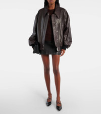 Product Details - Material: 100% leather - Care instructions: specialist clean - Made in the USA - Designer color name: Dark Brown - Closure: zipper, snap-button fastenings - Pockets: side slit pockets - Lining: 100% cupro - Trim: 100% wool - Item number: P00992490 Size & Fit - True to size - Dropped shoulders - Designed for a loose fit - Elasticated hem - Non-stretchy fabric - Falls below the hip - The model seen in the picture is 178cm-5'10" and wearing a size XS
