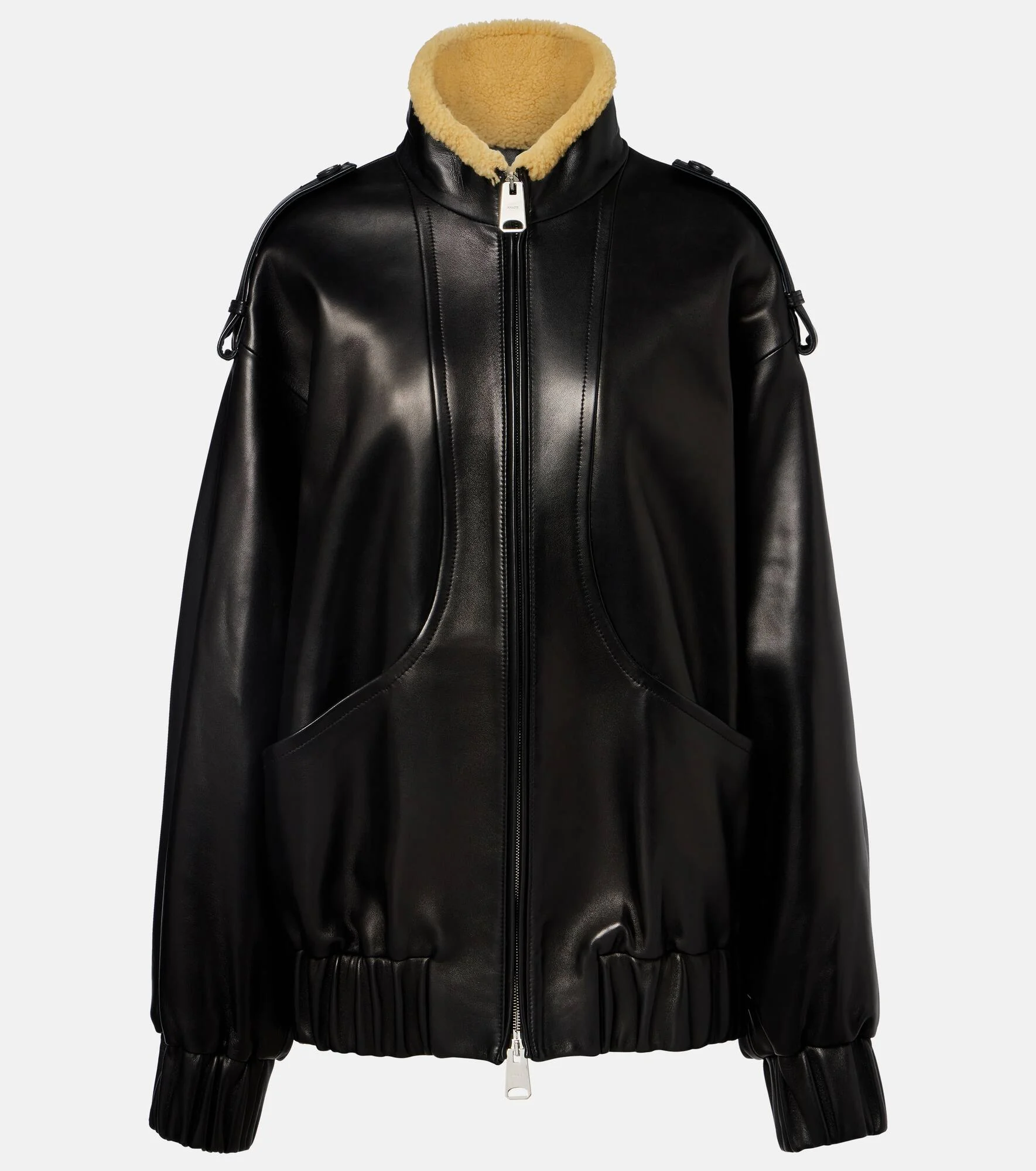 Khaite's minimalist designs exude modern sophistication and effortless elegance. Crafted from supple leather, the Sigi jacket is trimmed with shearling and cut to a charming oversized fit. Product Details - Material: 100% lamb leather - Care instructions: specialist clean - Made in the USA - Color: black - Designer color name: Black - Item color: black - Closure: two-way zipped front - Pockets: slant pockets - Cuff: elasticated - Hem: elasticated - Epaulettes - Item number: P01107139