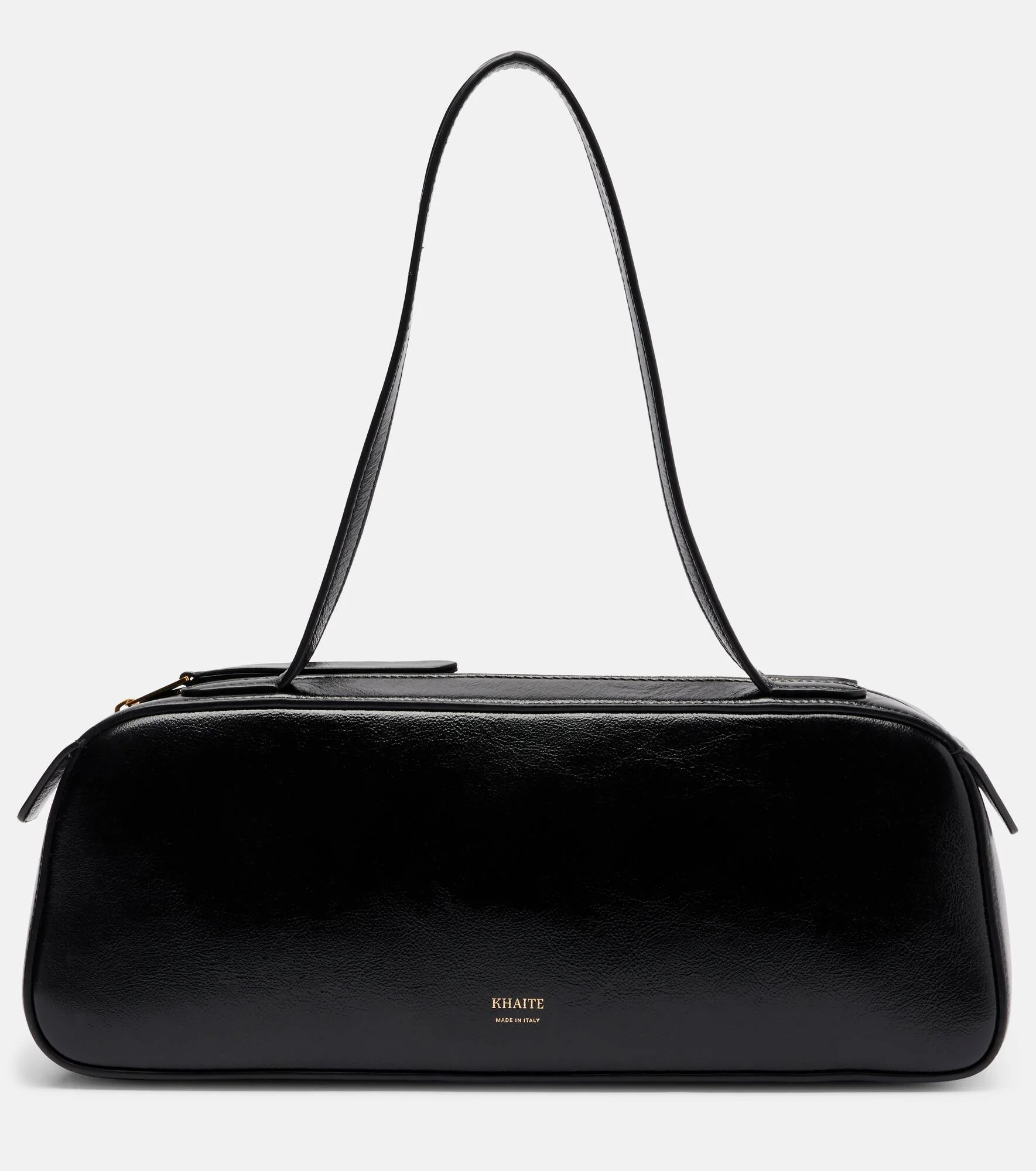 Clean lines and a sculptural silhouette characterize Khaite's Simona shoulder bag. An elegant design to carry on repeat, it's made from supple patent calf leather with a zipper closure. Product Details - Material: calf leather - Lining: calf leather - Made in Italy - Designer color name: Black - Item color: black - Closure: zipped top - Top handles - Hardware color: gold - Item number: P01071010 Size & Fit - Height 13cm-5" - Max. width 34,5cm-13.5" - Depth 7,5cm-3" - Length of handles 48cm-19"