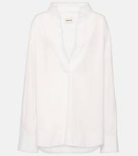 Product Details - Material: 100% cotton - Care instructions: dry clean - Made in Turkey - Designer color name: White - Oversized fit - Cuff: three buttons - Collar: V-neck - Item number: P00947537 Size & Fit - True to size - For a closer fit, we recommend taking one size down - Dropped shoulders - Oversized - Non-stretchy fabric - Falls below the hip - The model seen in the picture is 178cm-5'10" and wearing a size US 4