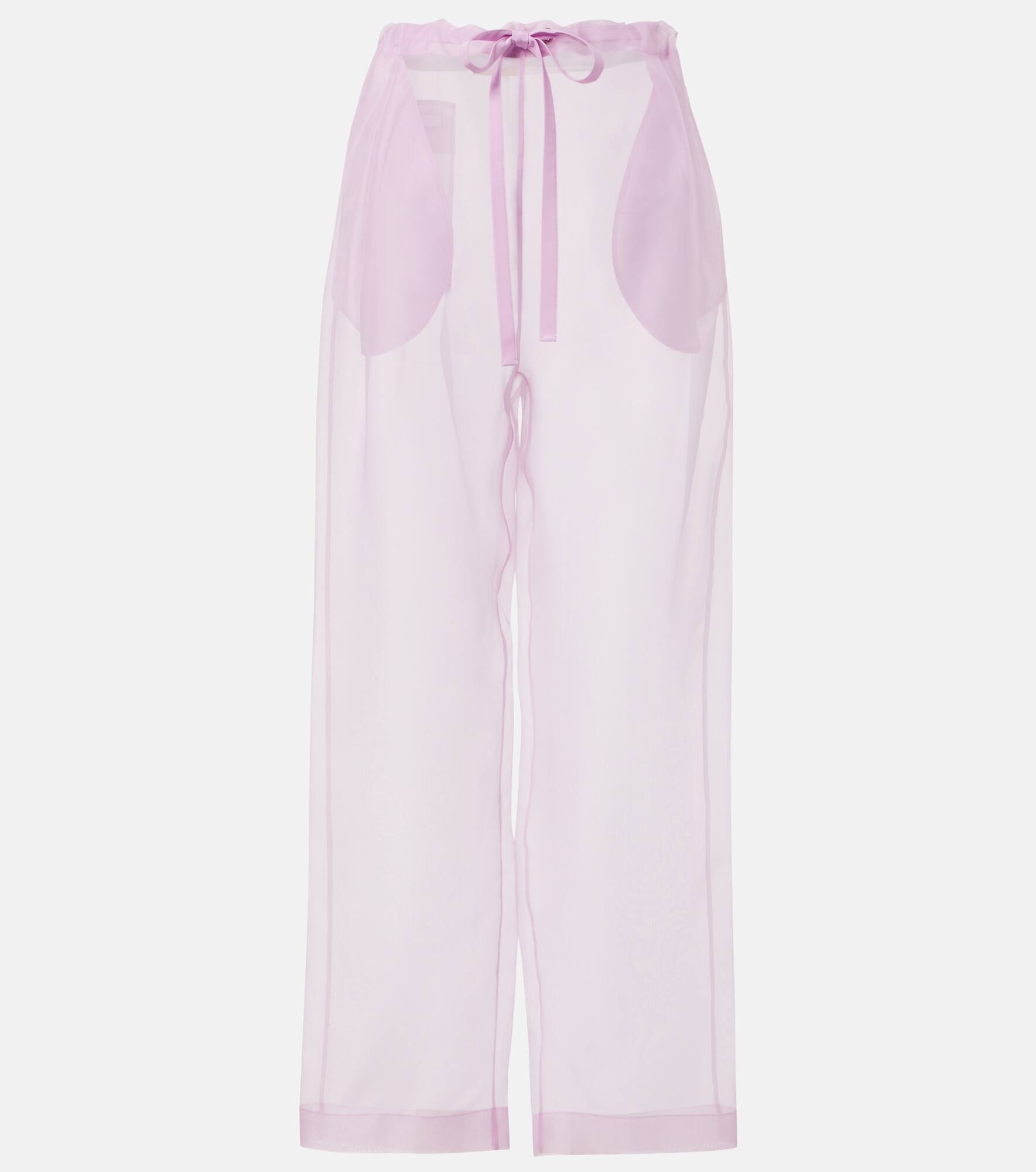 Product Details - Material: 90% silk, 8% other fibres, 2% polyester - Care instructions: hand wash - Made in the USA - Designer color name: Peony - Drawstring waist - Item number: P01042454 Size & Fit - True to size - Sheer - Adjustable at the waist - Non-stretchy fabric - Straight leg - The model seen in the picture is 178cm-5'10" and wearing a size XS