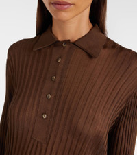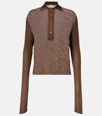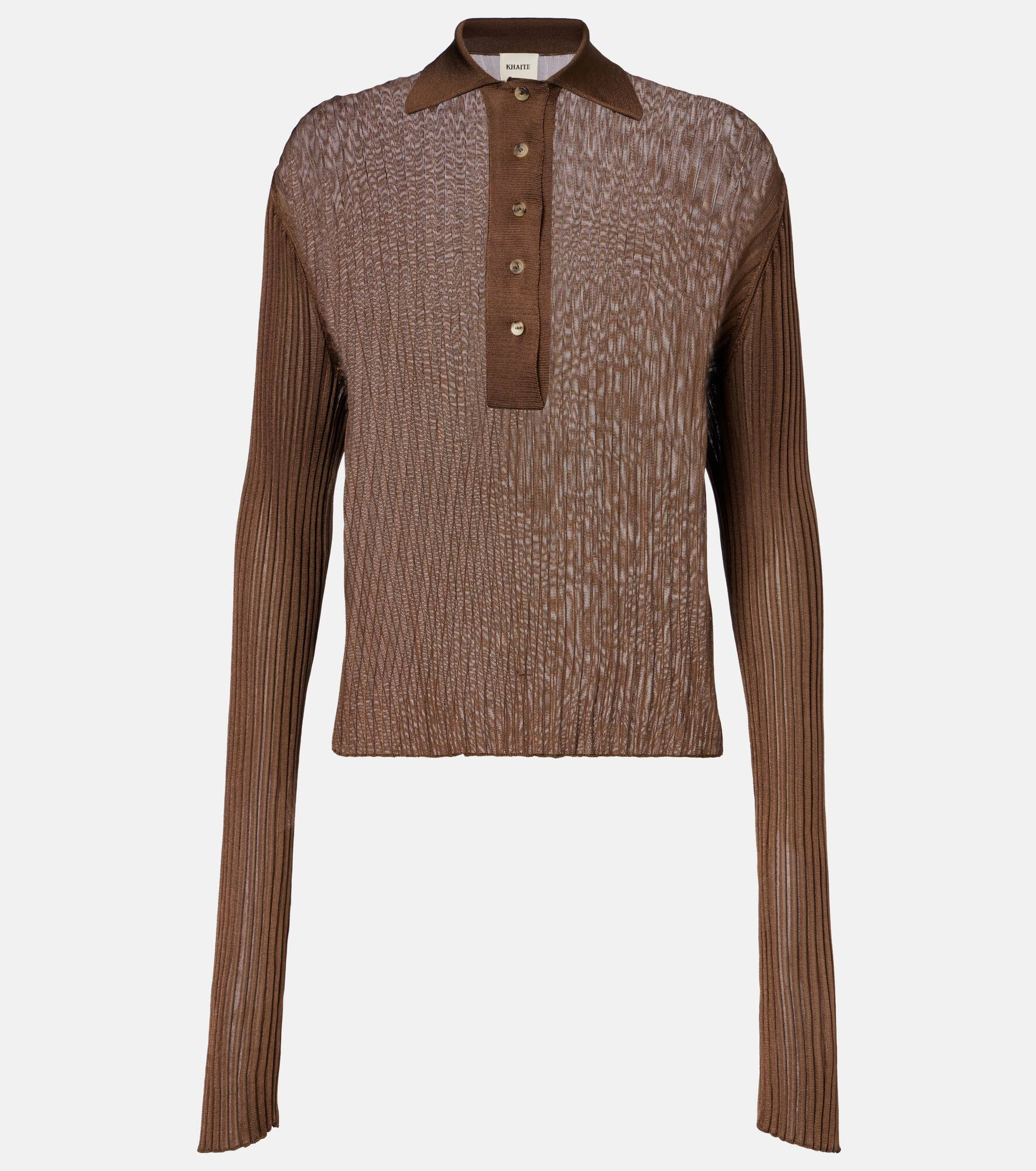 Khaite's minimalist designs exude modern sophistication and effortless elegance. The Vin polo shirt is ribbed-knit in Italy with elongated sleeves and a sheer finish. Product Details - Material: 100% viscose - Care instructions: dry clean - Made in Italy - Designer color name: Bark - Item color: brown - Closure: partially buttoned front - Cuff: elasticated - Hem: elasticated - Item number: P01077557 Size & Fit - True to size - Sheer - Straight fit - Stretchy fabric - Falls to the hip - Height of model is 179cm-70.5" and wears a size XS