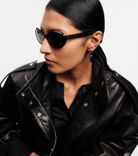 The 1969C sunglasses from Khaite's collaboration with Oliver Peoples feature oval lenses and thick acetate frames. Made in Italy, the black design is sure to give your accessories edit a classic refresh. Product Details - Frame color: black - Frame material: acetate - Lens color: light blue - comes in a case, comes with a presentation box - The color of the case may vary - Lens filter category 2 - Made in Italy - Item number: P00814205 Size & Fit - Lens width: 53mm-2.1" - Bridge size: 19mm-0.75" - Earpiece length: 145mm-5.7"