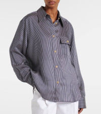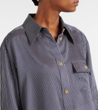 Product Details - Material: 86% viscose, 14% silk - Care instructions: dry clean - Made in the USA - Designer color name: Navy/ White - Lining: 100% silk - Closure: buttoned front - Cuff: three buttons - Pockets: buttoned pocket - Item number: P00992515 Size & Fit - True to size - Dropped shoulders - Oversized - Non-stretchy fabric - Falls below the hip - The model seen in the picture is 178cm-5'10" and wearing a size US 4