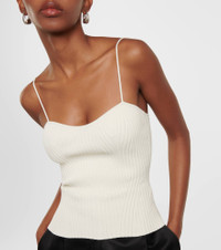 Khaite specializes in sculptural knit pieces, such as the Ziggy top. The ribbed design has slender straps and a sweetheart neckline. Product Details - Material: 15% polyester, 13% polyamide, 1% elastane, 71% viscose - Care instructions: dry clean - Made in Italy - Designer color name: Ivory - Item number: P00755617 Size & Fit - True to size - Fitted - Mid-weight material - Stretchy fabric - Falls to the hip - The model seen in the picture is 178cm-5'10" and wearing a size XS