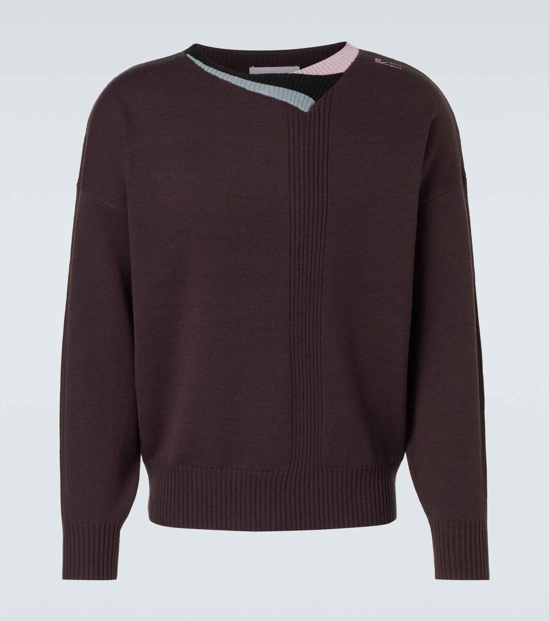 Opt for a classic design with a twist in this Kiko Kostadinov sweater. Crafted from wool and silk, the garment is cut to a relaxed silhouette and finished with a front ribbed-knit panel and a three-color crewneck. Product Details - Material: 75% wool, 25% silk - Care instructions: dry clean - Made in China - Designer color name: Dark Brown/Pine/Lilac - Item color: brown - Sleeves: long-sleeved - Item number: P01080266 Size & Fit - True to size - Dropped shoulders - Designed for a loose fit - Stretchy fabric - Falls to the hip - Height of model is 189cm-74.5" and wears a size IT 50