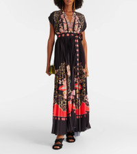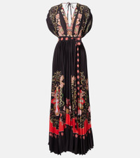 Accordion printed plissé maxi dress