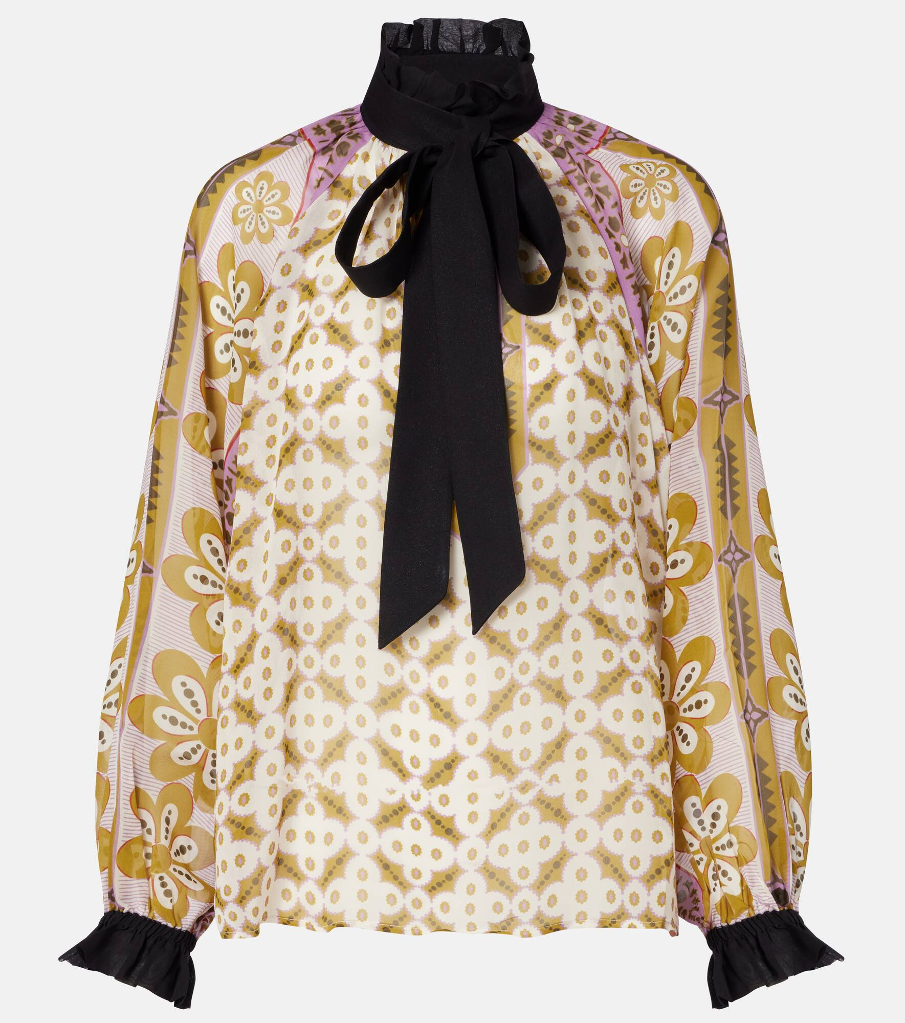 Cerere printed tie-neck silk blouse