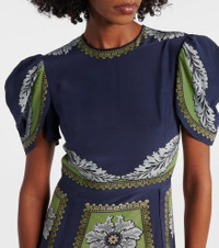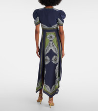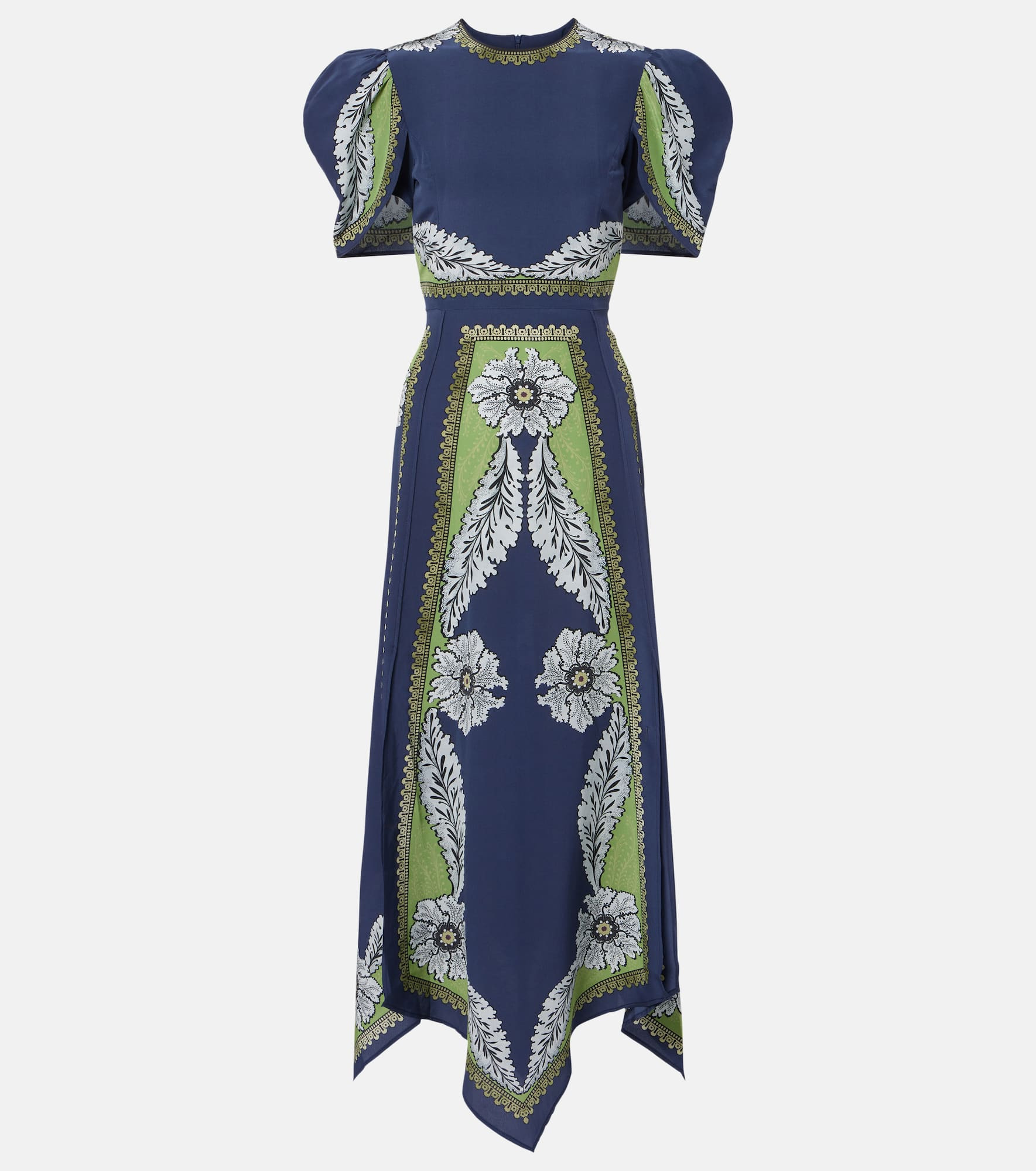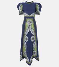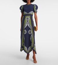 La DoubleJ works with top Milanese textile manufacturers to bring archival patterns to life, as seen in the Cherie maxi dress. Crafted from silk with an elegant motif all over, the style is defined by a scarf-like hem and puff sleeves. Product Details - Material: 100% silk - Care instructions: dry clean - Made in Italy - Designer color name: Bounty Placee - Item color: blue, green - Closure: zipped back - Side slits - Item number: P01084452 Size & Fit - True to size - Cinched waist - Non-stretchy fabric - The model seen in the picture is 178cm-5'10" and wearing a size XS