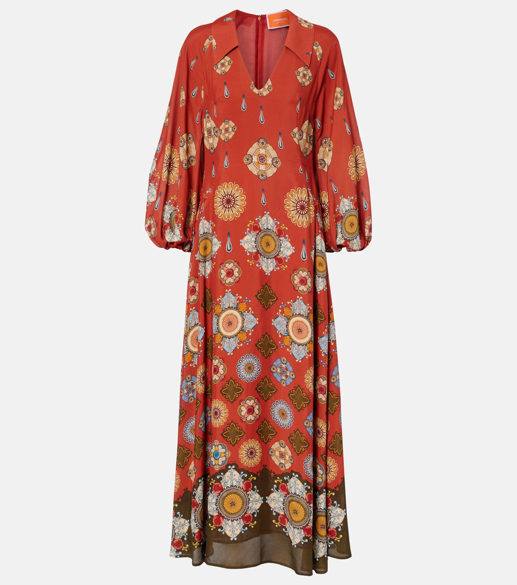Channel the glamour of Italy's 20th century movie stars in the Diva printed maxi dress from La DoubleJ. Featuring one of the brand's signature bold patterns, this airy style is casual yet elegant. Product Details - Material: 100% viscose - Care instructions: dry clean - Made in Italy - Designer color name: Nucleus - Item color: multicolor, red - Collar: polo collar - Hem: straight - Cuff: elasticated - Closure: zipped back - Item number: P01084544 Size & Fit - True to size - Cinched waist - Non-stretchy fabric - The model seen in the picture is 178cm-5'10" and wearing a size XS