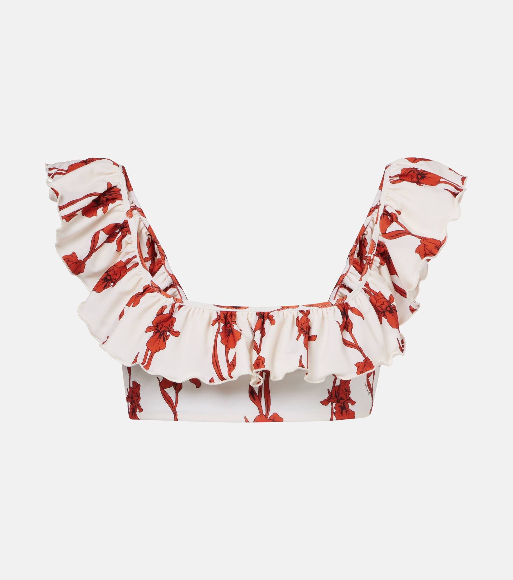 Product Details - Material: 80% polyamide, 20% elastane - Care instructions: machine wash at 30 degrees - Made in Italy - Designer color name: Mini Iris - Item color: ivory, red - Closure: clip fastening - Lining: 73% polyamide, 27% elastane - Includes: dust bag - Item number: P01028691 Size & Fit - True to size - Unpadded Top - The model seen in the picture is 178cm-5'10", cup size B, and wearing a size XS