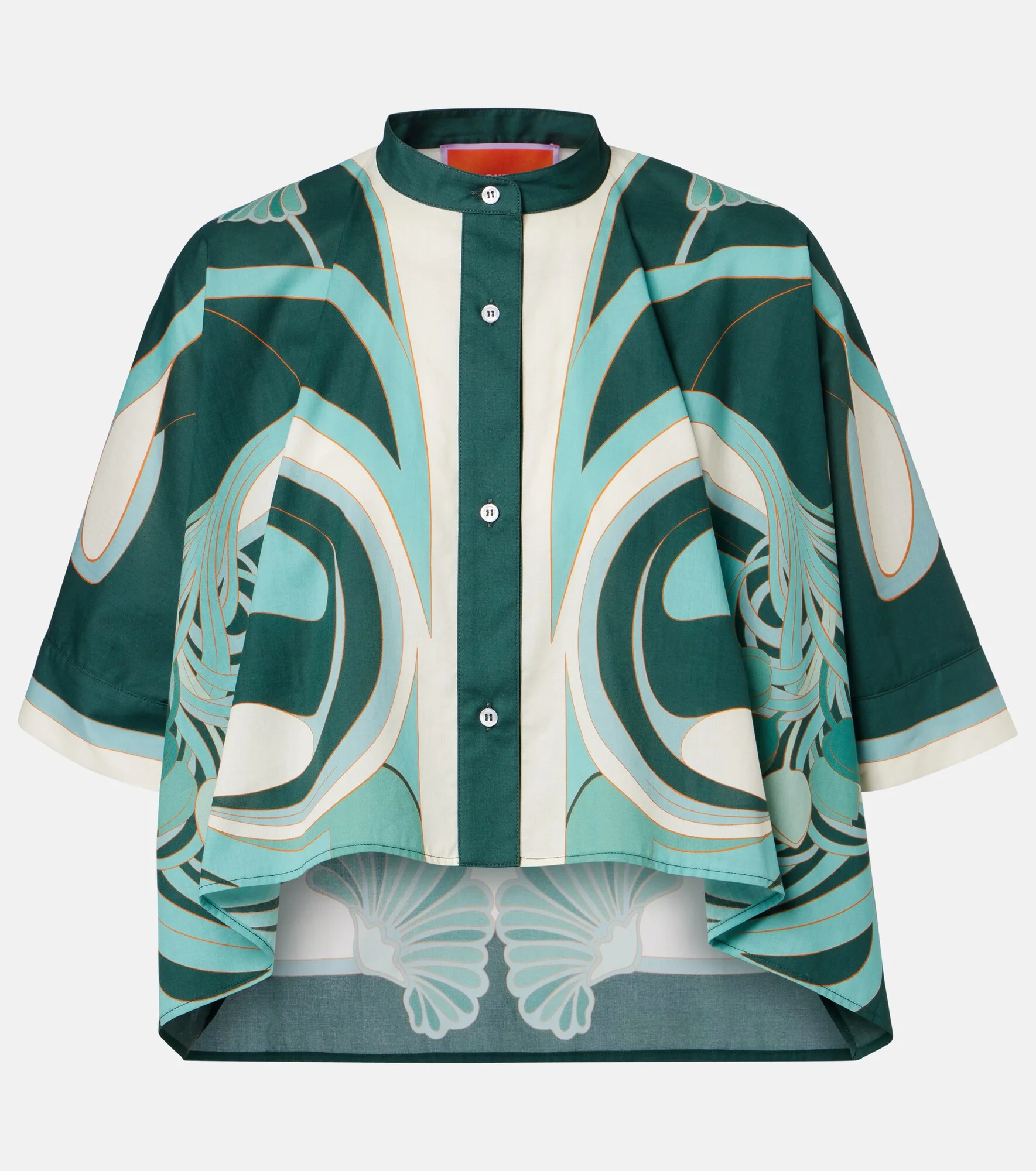 The Foulard cotton muslin shirt showcases La DoubleJ's love for bold patterns. Made in Italy, the design's cropped silhouette and relaxed fit create a dynamic sense of movement. Product Details - Material: 100% cotton - Care instructions: machine wash at 30 degrees - Made in Italy - Color: green - Designer color name: Blooming Tulip Placee - Collar: band - Closure: buttoned placket - Item number: P01166227 Size & Fit - True to size - Designed for a loose fit - Non-stretchy fabric - Slightly cropped - The model seen in the picture is 178cm-5'10" and wearing a size XS