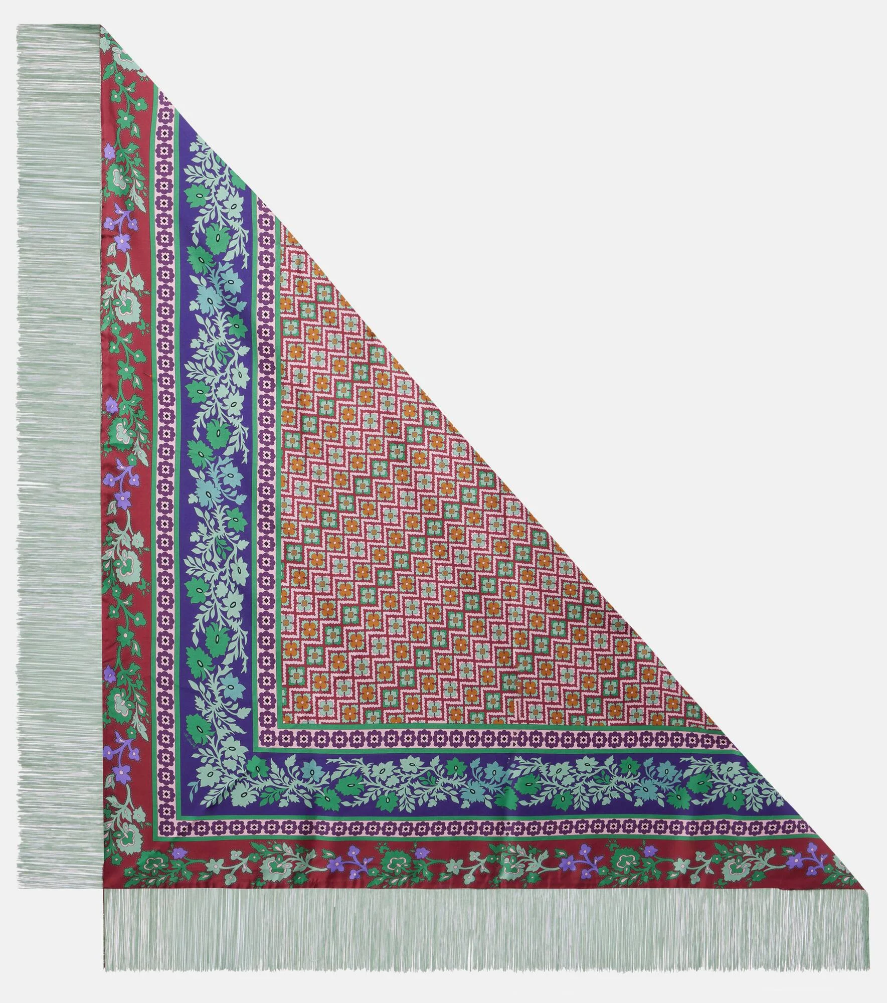 Fringed printed silk twill scarf