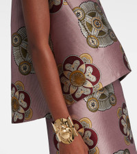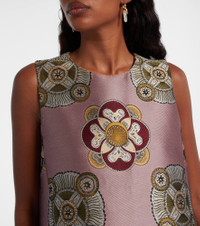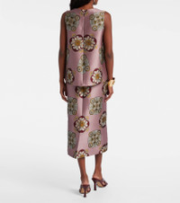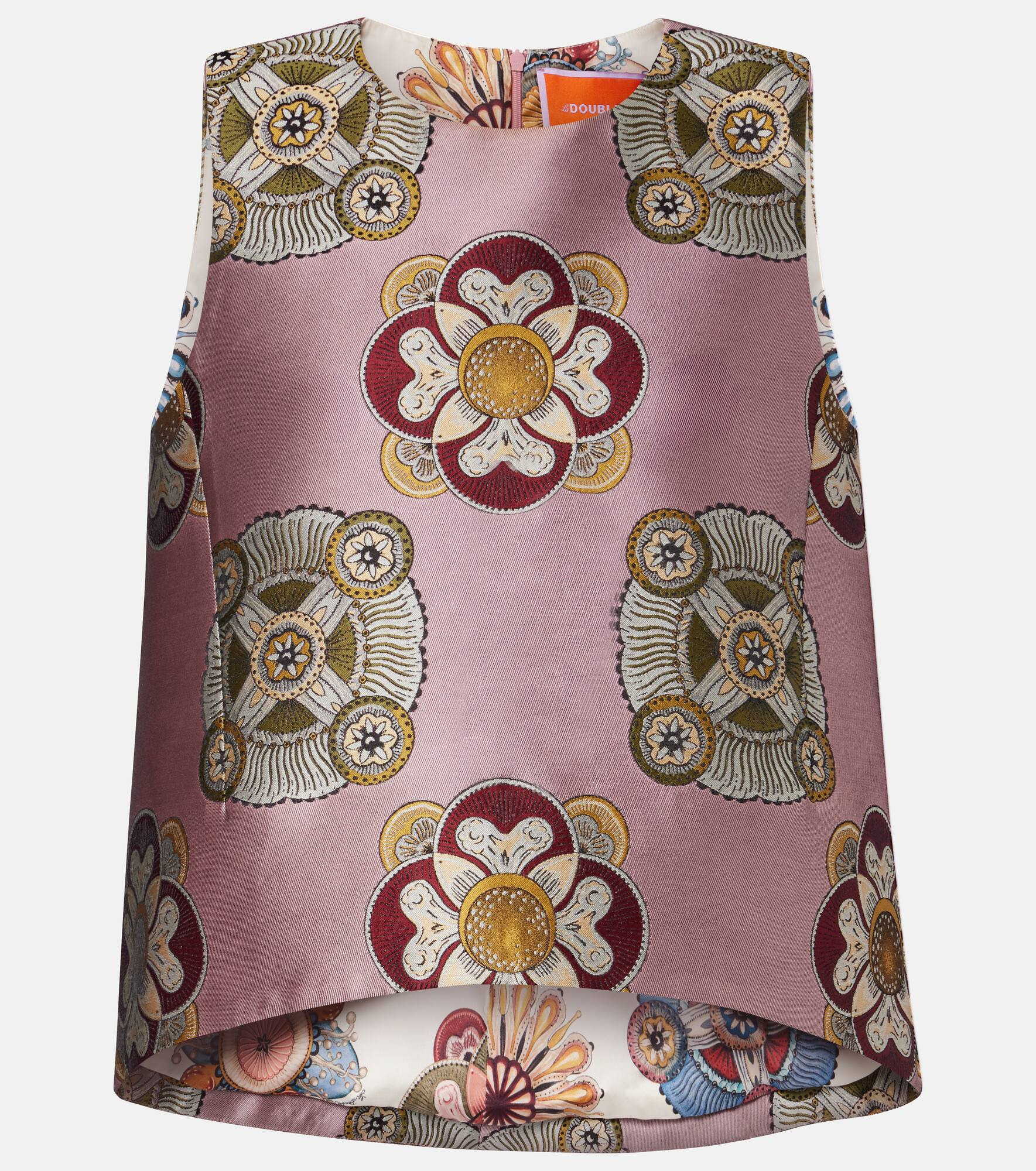 Turn to La DoubleJ for distinctive silhouettes and mesmerizing patterns. The La Scala top is characterized by a striking jacquard motif and features an asymmetric hemline. Product Details - Material: 72% polyester, 28% silk - Care instructions: dry clean - Made in Italy - Designer color name: Nucleus - Item color: pink - Collar: crewneck - Closure: zipped back - Hem: uneven - Item number: P01084449 Size & Fit - True to size - Designed for a loose fit - Non-stretchy fabric - Falls to the hip - The model seen in the picture is 178cm-5'10" and wearing a size XS