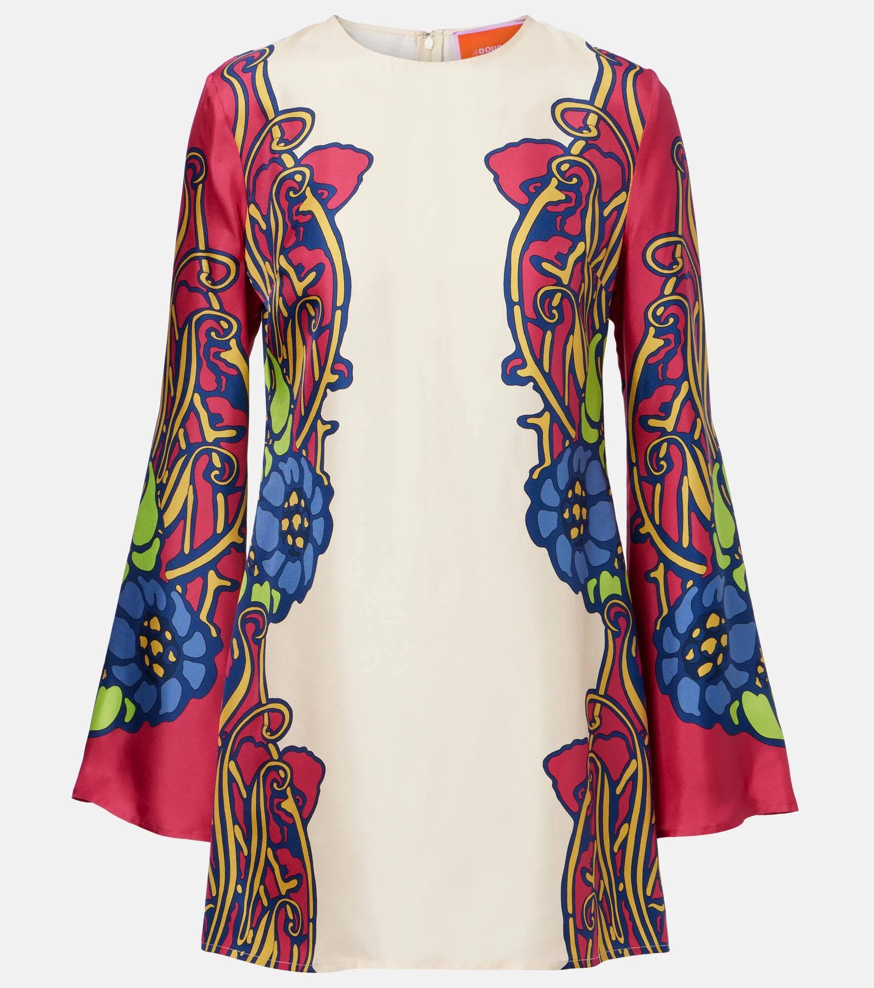 La DoubleJ works with top Milanese textile manufacturers to bring archival patterns to life on its signature eclectic styles. Crafted from silk satin, this minidress is adorned allover with Lemuria Placee print. Product Details - Material: 100% silk - Care instructions: dry clean - Made in Italy - Color: white - Designer color name: Lemuria Placee - Item color: multicolor, white - Closure: concealed zipped back - Item number: P01129198 Size & Fit - True to size - Straight fit - Non-stretchy fabric - The model seen in the picture is 178cm-5'10" and wearing a size XS