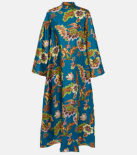 Icon Magnifico belted floral-print silk-twill midi dress Green