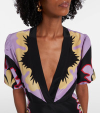 La DoubleJ works with top Milanese textile manufacturers to bring archival patterns to life on its signature eclectic styles. Made from silk crepe de chine, the Marlene maxi dress features puff sleeves, a V-neckline, and the brand's Placee print. Product Details - Material: 100% silk - Care instructions: dry clean - Made in Italy - Designer color name: Palazzo Placee - Item color: purple, multicolor - Closure: zipped side - Cuff: elasticated - Item number: P01051944 Size & Fit - True to size - Cinched waist - Non-stretchy fabric - The model seen in the picture is 178cm-5'10" and wearing a size XS