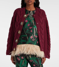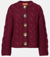 The Portrait cardigan from La DoubleJ showcases the vibrant, playful aesthetic the Italian brand is known for. Finely crafted in Italy, the design is embellished with rhinestone snap-buttons. Product Details - Material: 40% wool, 25% viscose, 25% nylon, 10% cashmere - Care instructions: dry clean - Made in Italy - Designer color name: Solid - Item color: burgundy - Closure: snap-buttoned front - Sleeves: long-sleeved - Collar: crewneck - Item number: P01084439 Size & Fit - True to size - Dropped shoulders - Straight fit - Slightly stretchy fabric - Falls to the hip - The model seen in the picture is 178cm-5'10" and wearing a size XS