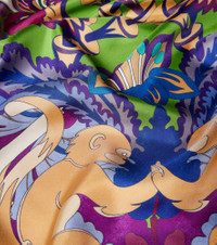 La DoubleJ works with top Milanese textile manufacturers to bring archival patterns to life on its signature eclectic styles. Italian-crafted from pure silk twill, this scarf is detailed with vibrant, eye-catching motifs. Product Details - Material: 100% silk - Care instructions: dry clean - Made in Italy - Designer color name: Cornucopia Placee - Item color: multicolor - Includes: box - Item number: P01129955 Size & Fit - Length 90cm-35.5" - Width 90cm-35.5"