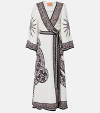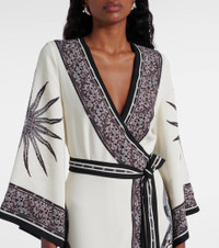 La DoubleJ works with top Milanese textile manufacturers to bring archival patterns to life on its signature eclectic styles. This printed wrap dress features a flowing silhouette with a deep V-neckline and adjustable self-tie belt. Product Details - Material: 96% viscose, 4% elastane - Care instructions: dry clean - Made in Italy - Designer color name: Cobra Placee - Item color: multicolor - Closure: self-ties - Item number: P01051935 Size & Fit - True to size - Loose fit, comes with belt - Non-stretchy fabric - The model seen in the picture is 178cm-5'10" and wearing a size XS